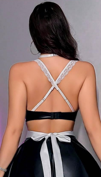 Romantik ve oyunlu tasarımıyla öne çıkan bu maid konseptli fantezi kostüm, siyah mini elbise ve beyaz dantel önlüğüyle klasik bir görünüm kazandırır. Kırmızı fiyonk detayı feminen bir dokunuş sunarken, trident aksesuarı kostüme farklı bir hava katar. Vücuda oturan formu sayesinde hem şık hem de çekici bir kullanım sağlar.